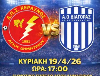Την Κυριακή 19 Απριλίου, στις 17:00, στο γήπεδο του Αγίου Δημητρίου, θα πραγματοποιηθεί ο αγώνας…