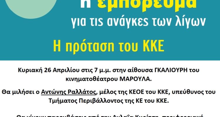 Πρόσκληση στην εκδήλωση του ΚΚΕ με θέμα: «Υποδομές – νερό κοινωνικό αγαθό ή εμπόρευμα; Πολιτική…