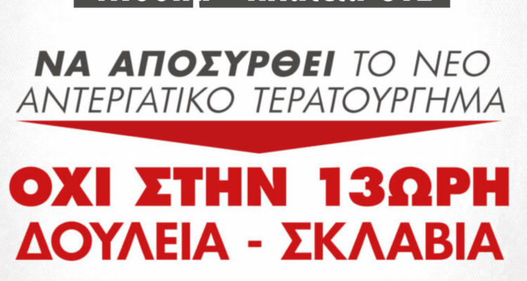 ΜΑΖΙΚΗ ΣΥΜΜΕΤΟΧΗ ΤΩΝ ΕΡΓΑΖΟΜΕΝΩΝ ΣΤΗΝ ΑΠΕΡΓΙΑΚΗ ΣΥΓΚΕΝΤΡΩΣΗ ΣΗΜΕΡΑ ΓΙΑ ΝΑ ΜΗΝ ΠΕΡΑΣΕΙ Η 13ΩΡΗ ΕΡΓΑΣΙΑ