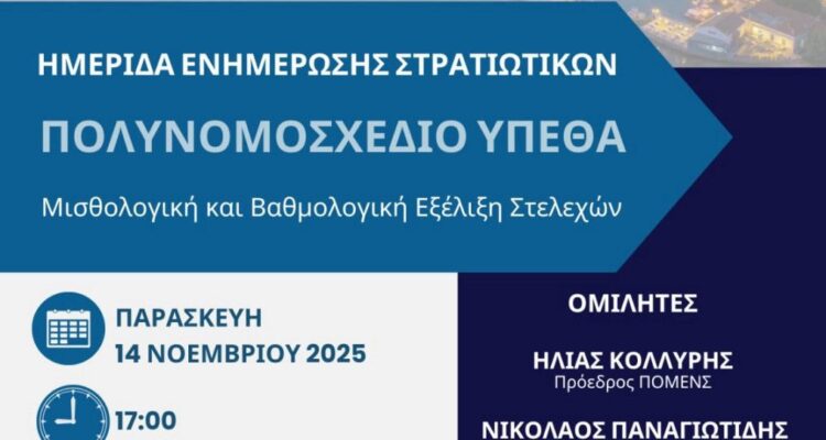 ΗΜΕΡΙΔΑ ΕΝΗΜΕΡΩΣΗΣ ΣΤΡΑΤΙΩΤΙΚΩΝ ΤΗΣ ΛΗΜΝΟΥ: ΠΟΛΥΝΟΜΟΣΧΕΔΙΟ ΥΠΕΘΑ – ΜΙΣΘΟΛΟΓΙΜΗ ΚΑΙ ΒΑΘΜΟΛΟΓΙΚΗ ΕΞΕΛΙΞΗ ΣΤΕΛΕΧΩΝ