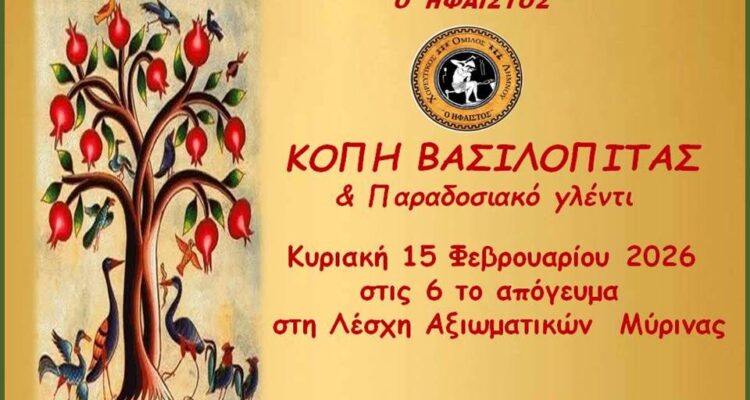 Πρόσκληση Ο Α.Ο. Ήφαιστος Λήμνου σας προσκαλεί στην κοπή της Πρωτοχρονιάτικης Πίτας του συλλόγου που…
