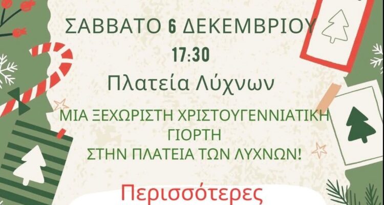 ΧΡΙΣΤΟΥΓΕΝΝΙΑΤΙΚΗ ΓΙΟΡΤΗ ΕΤΟΙΜΑΖΕΙ Ο ΠΟΛΙΤΙΣΤΙΚΟΣ ΣΥΛΛΟΓΟΣ ΛΥΧΝΩΝ ΣΤΗΝ ΠΛΑΤΕΙΑ ΤΟΥ ΧΩΡΙΟΥ ΤΟ ΣΑΒΒΑΤΟ 6 ΔΕΚΕΜΒΡΙΟΥ…