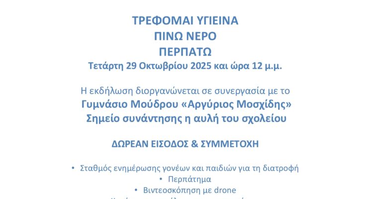 ΔΡΑΣΗ ΚΑΤΑ ΤΗΣ ΠΑΙΔΙΚΗΣ ΠΑΧΥΣΑΡΚΙΑΣ ΑΠΟ ΤΟ ΠΑΝΕΠΙΣΤΗΜΙΟ ΑΙΓΑΙΟΥ ΣΤΟ ΓΥΜΝΑΣΙΟ ΜΟΥΔΡΟΥ