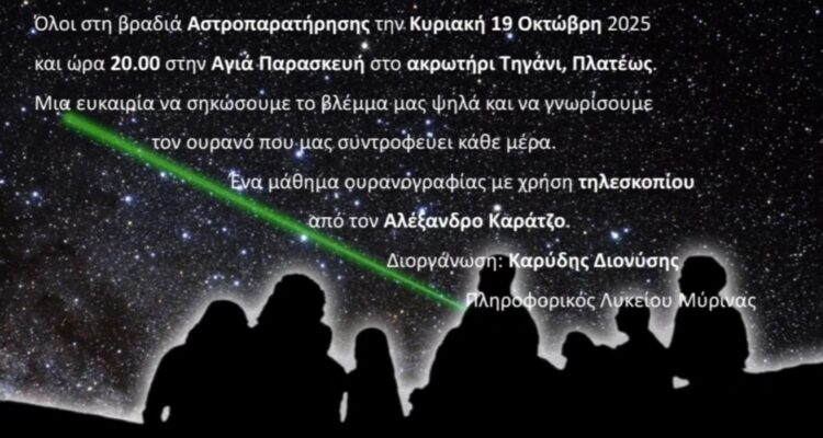 ΠΡΟΣΚΛΗΣΗ ΕΠΑΛ ΜΥΡΙΝΑΣ Όλοι μαζί κάτω από τον έναστρο ουρανό! Την Κυριακή 19 Οκτώβρη 2025,…