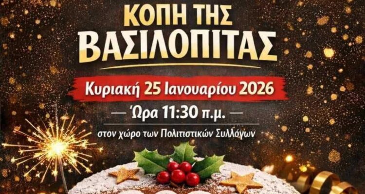 Η Κοινότητα Λύχνων και ο Πολιτιστικός Σύλλογος του χωριού προσκαλούν στην κοπή της Βασιλόπιτας τους…