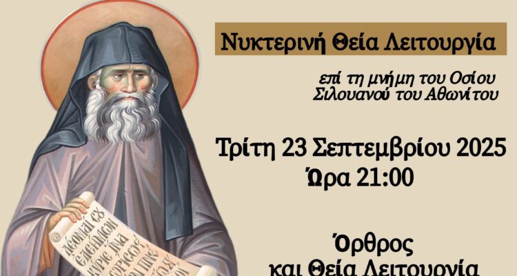 Απόψε Τρίτη 23/9 στις 9 το βράδυ θα τελεστεί Όρθρος και Νυκτερινή Θεία Λειτουργία επί…