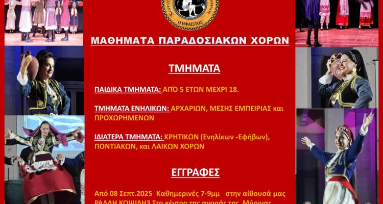 Οι εγγραφές ξεκίνησαν στο Λύκειο Ελληνίδων Λήμνου και συνεχίζονται. "Μικροί και μεγάλοι, ελάτε να χορέψουμε,…