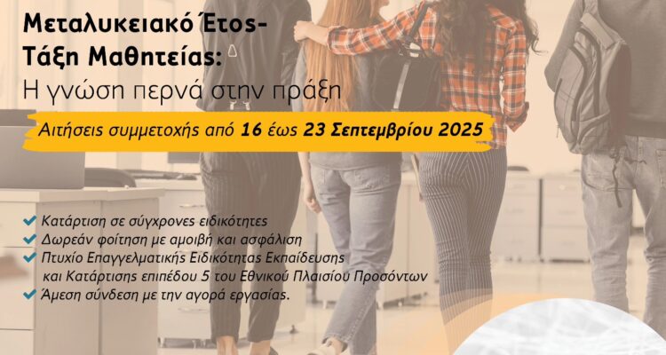 ΕΠΑΛ Μύρινας – Πρόσκληση για συμμετοχή στο Μεταλυκειακό Έτος – Τάξη Μαθητείας Το ΕΠΑΛ Μύρινας…