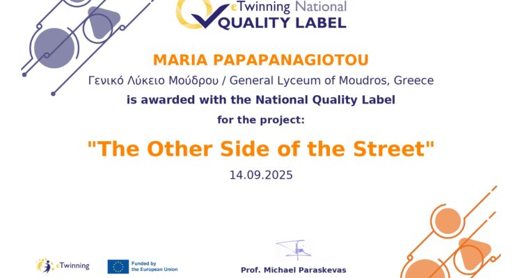 ΕΘΝΙΚΗ ΔΙΑΚΡΙΣΗ ΤΟΥ ΓΕΝΙΚΟΥ ΛΥΚΕΙΟΥ ΜΟΥΔΡΟΥ ΣΤΟ ΕΥΡΩΠΑΪΚΟ ΠΡΟΓΡΑΜΜΑ E TWINNING