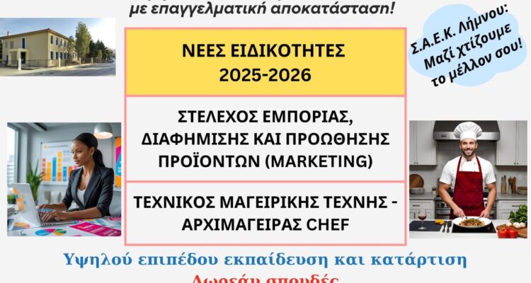 ΣΕΠΕ ΛΗΜΝΟΥ: ΚΑΛΗ ΚΑΙ ΔΗΜΙΟΥΡΓΙΚΗ ΣΧΟΛΙΚΗ ΧΡΟΝΙΑ – ΕΛΛΕΙΨΕΙΣ ΕΚΠΑΙΔΕΥΤΙΚΩΝ ΕΙΔΙΚΟΤΗΤΩΝ ΚΑΙ ΠΡΟΒΛΗΜΑΤΑ