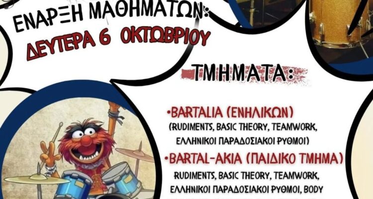 Το Σάββατο 6 Οκτωβρίου. ξεκινά η νέα χρονιά για τα Bartalia!!! Με τμήματα ενηλίκων, παιδικό…