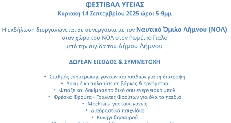 ΦΕΣΤΙΒΑΛ ΥΓΕΙΑΣ – ΕΘΝΙΚΗ ΔΡΑΣΗ ΚΑΤΑ ΤΗΣ ΠΑΙΔΙΚΗΣ ΠΑΧΥΣΑΡΚΙΑΣ
