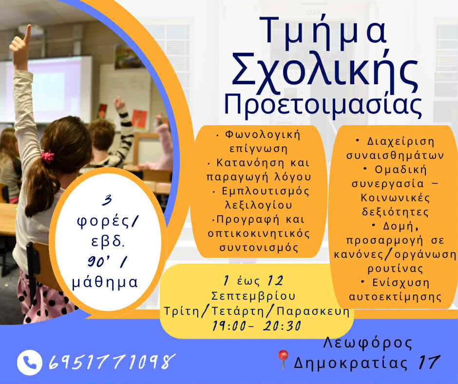 Το τμήμα σχολικής προετοιμασίας επιστρέφει!