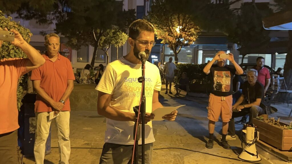 Την κεντρική ομιλία έκανε ο γραμματέα της ΕΛΜΕ Λήμνου & Αγίου Ευστρατίου Σωκράτης Παπαστεργίου αναφερόμενος στην γενοκτονία που συντελείται στην Παλαιστίνη από το κράτος του Ισραήλ.