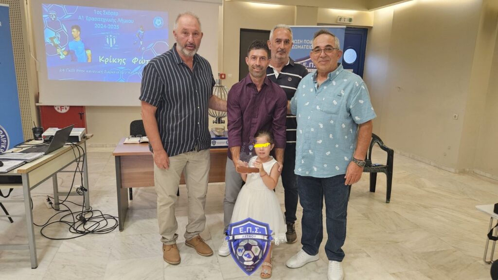 Η εκδήλωση ξεκίνησε με την απονομή αναμνηστικού επάθλου από τον πρόεδρο της Επιτροπής Πρωταθλήματος & Κυπέλλου, κ. Σταθάκη, στον πρώτο σκόρερ της κανονικής διάρκειας της αγωνιστικής περιόδου 2024-2025, κ. Κρίκη Φ., ποδοσφαιριστή του Ηρακλή Ατσικής, ο οποίος σημείωσε 24 γκολ.