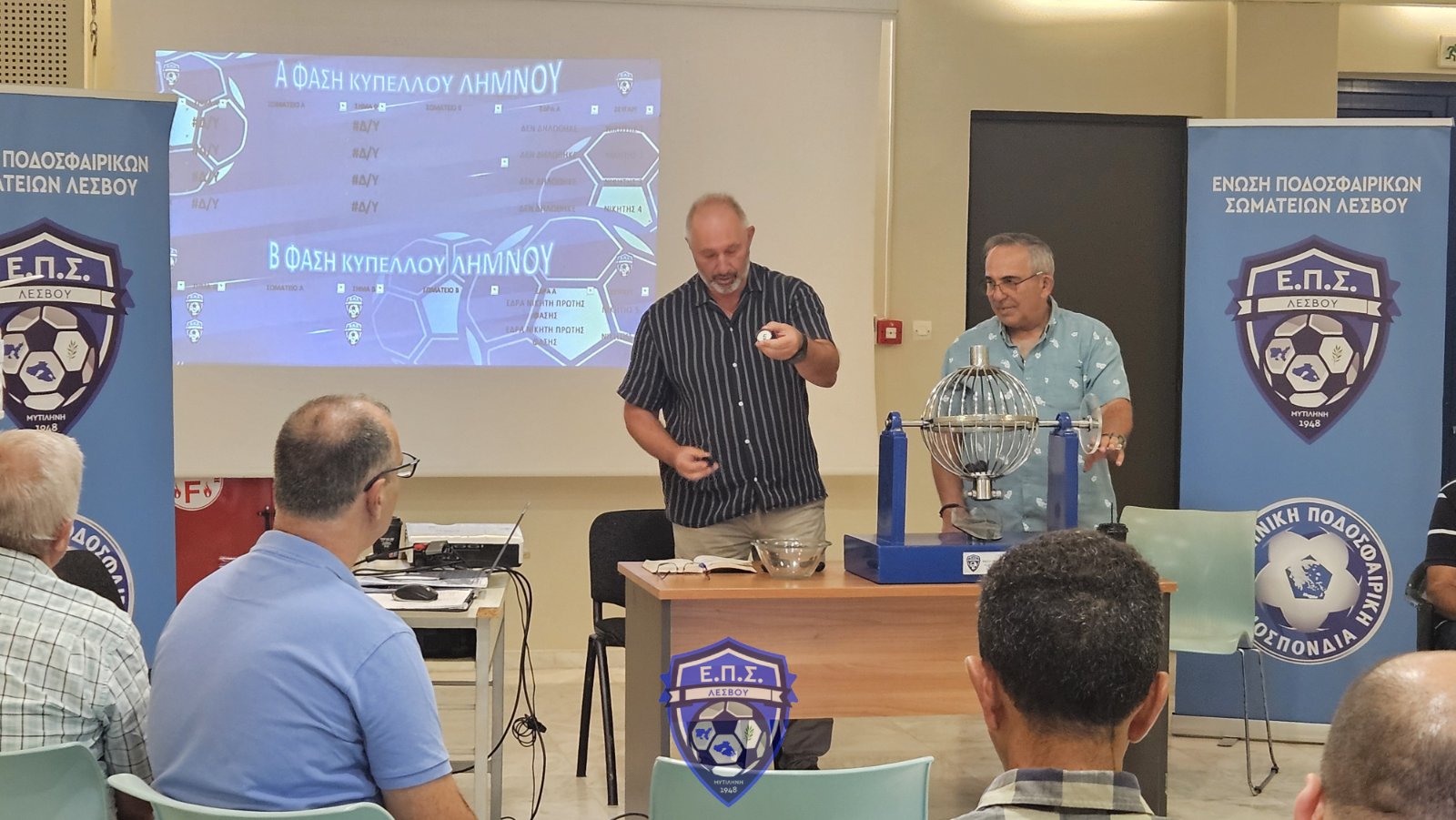 Η κλήρωση Πρωταθλήματος Α Λήμνου και Κυπέλλου ΕΠΣ Λέσβου (Λήμνος) πραγματοποιήθηκε την Παρασκευή, 29 Αυγούστου 2025, στην αίθουσα “Μαρούλα” στη Λήμνο.