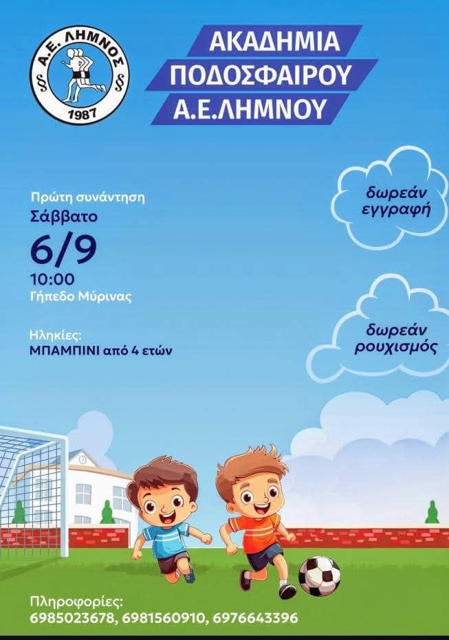 Πρώτη συνάντηση το Σάββατο 6 Σεπτεμβρίου, στο γήπεδο της Μύρινας στις 10:00 το πρωί