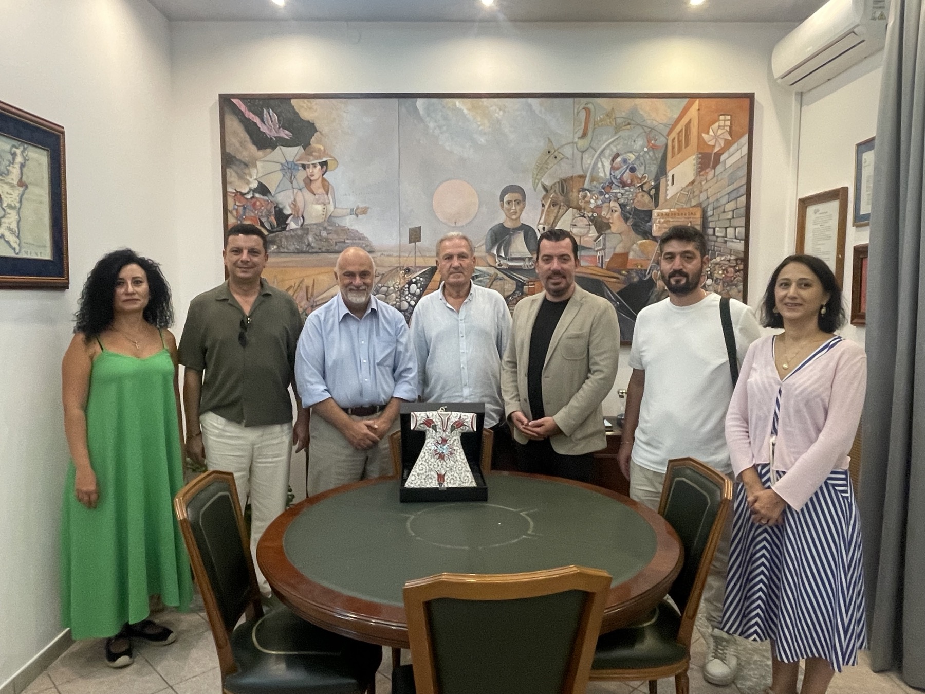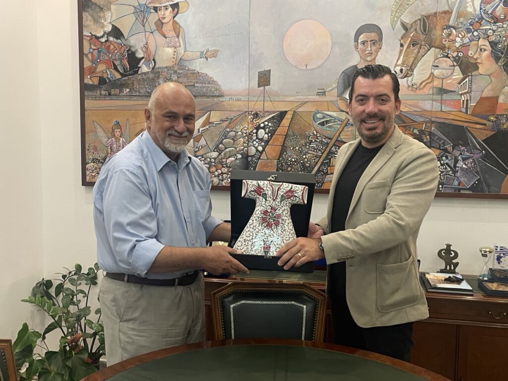 Στη συνέχεια ο κ. Aydin προσέφερε στον Αντιδήμαρχο ένα αναμνηστικό δώρο, το οποίο απεικονίζει ένα παραδοσιακό καφτάνι της περιοχής τους.