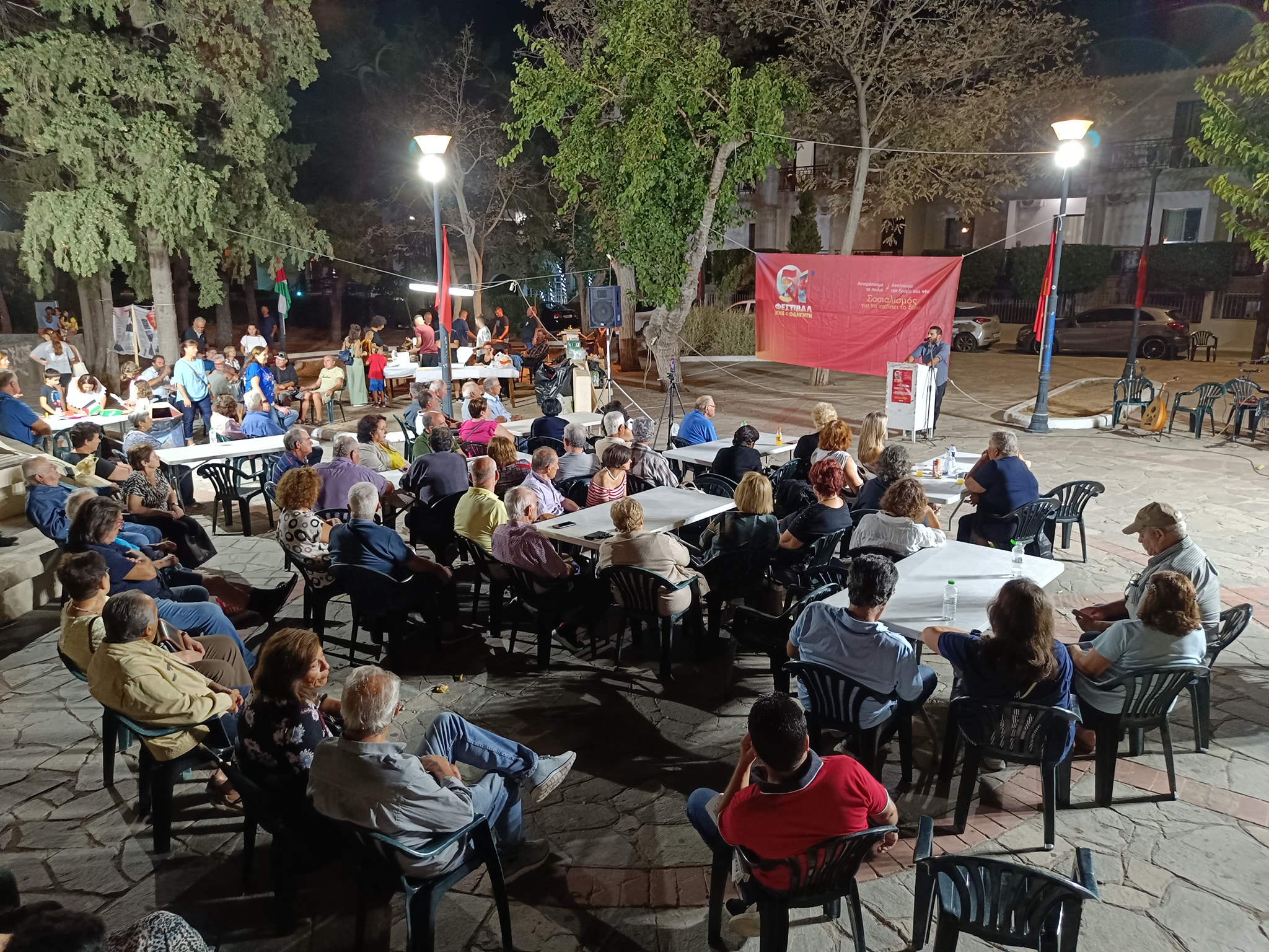 Η κεντρική ομιλία είχε αναφορές στα επίκαιρα και επίμαχα ζητήματα της πολιτικής , όπως η οικονομία, η εξωτερική πολιτική , οι πολεμικές διαμάχες που διεξάγονται σε 92 χώρες, οι εξαγγελίες στην ΔΕΘ και φυσικά το νομοσχέδιο που προβλέπει 13 ώρες δουλειάς που αποτελεί αιτία πολέμου για τους εργαζόμενους..