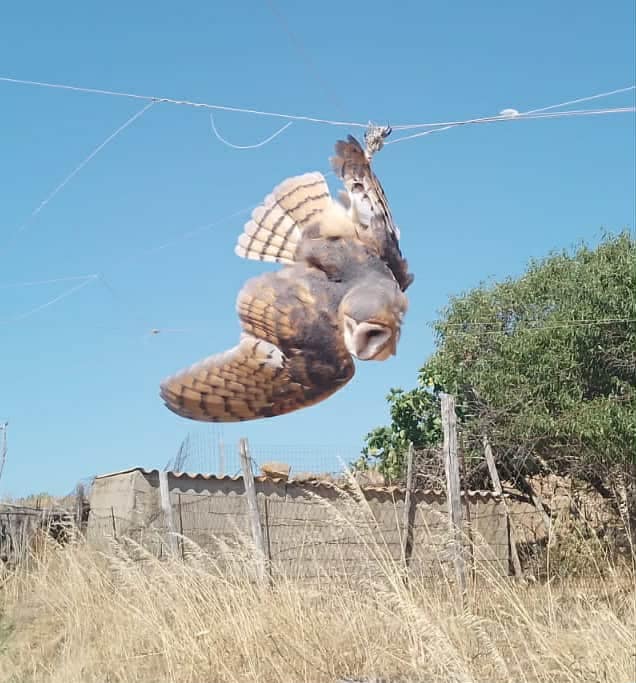 Στα μέσα καλοκαιριού μια κουκουβάγια Τυτώ, βρέθηκε τραυματισμένη και παγιδευμένη , είχε κρεμαστεί από το φτερό της στην περιοχή του Κοντοπουλίου. Η ζωή της ήταν σε κίνδυνο όμως ευτυχώς η κ. Φωτεινή Μηδέλια την εντόπισε και ανέλαβε δράση.