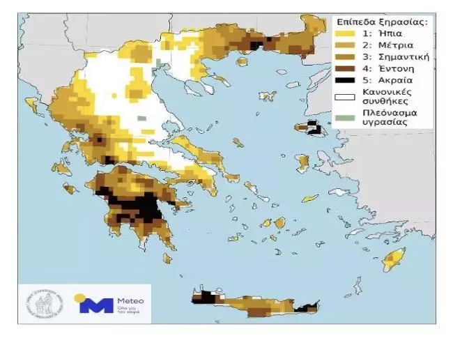 Εικόνα 1: Επίπεδα ξηρασίας στην Ελλάδα (01/09/2025, πηγή: Meteo/ΕΑΑ – Copernicus CCS).