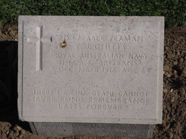 Το τέλος του πολέμου σήμανε και τις τελευταίες ταφές Αυστραλών στη Λήμνο. Πλέοντας προς το λιμάνι της Σμύρνης, το HMAS Brisbane ενταφίασε δύο ναύτες του στο Στρατιωτικό Νεκροταφείο του Ανατολικού Μούδρου στις 2 Δεκεμβρίου 1918. Ο Stoker John Godier από το Bendigo και ο Able Seaman Thomas Chitts από το Sandringham πέθαναν και οι δύο από ασθένεια, όπως τόσοι άλλοι ANZACs το 1915. Ήταν οι τελευταίοι από τους 148 Αυστραλούς στρατιωτικούς που τάφηκαν στη Λήμνο.