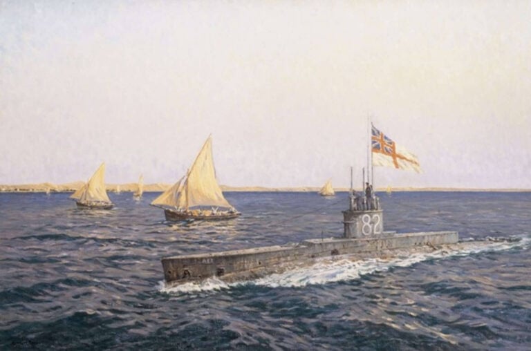 Το AE2 στη θάλασσα του Μαρμαρά τον Απρίλιο του 1915. Πίνακας του Charles Bryant το 1925. Πηγή: AWM