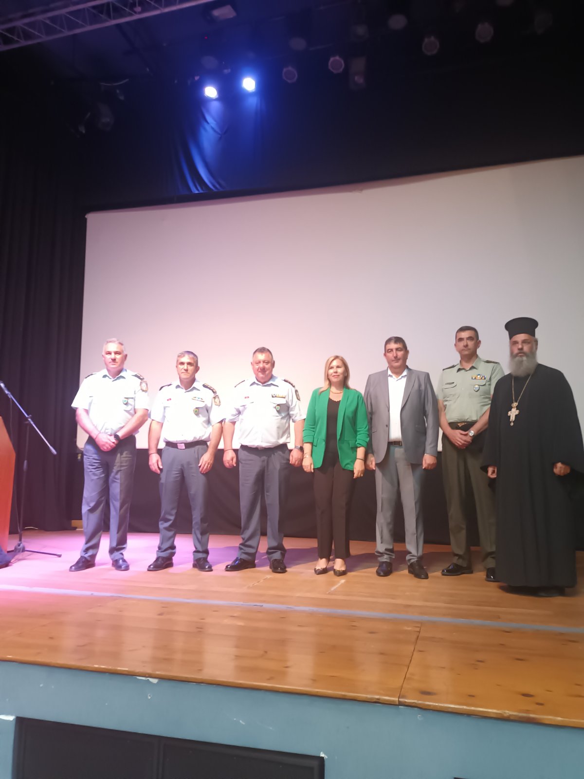 Χαιρετισμούς απηύθυναν στην εκδήλωση της 20-09-2025, ο Γενικός Περιφερειακός Αστυνομικός Διευθυντής Βορείου Αιγαίου, Υποστράτηγος κ. Μιχαήλ Σεβδυνίδης, ο Σεβασμιώτατος Μητροπολίτης Λήμνου και Αγίου Ευστρατίου κ.κ. Ιερόθεος, η Δήμαρχος Λήμνου κα Ελεονώρα Γεώργα και ο Έπαρχος Λήμνου κ. Απόστολος Κουτσογιάννης.