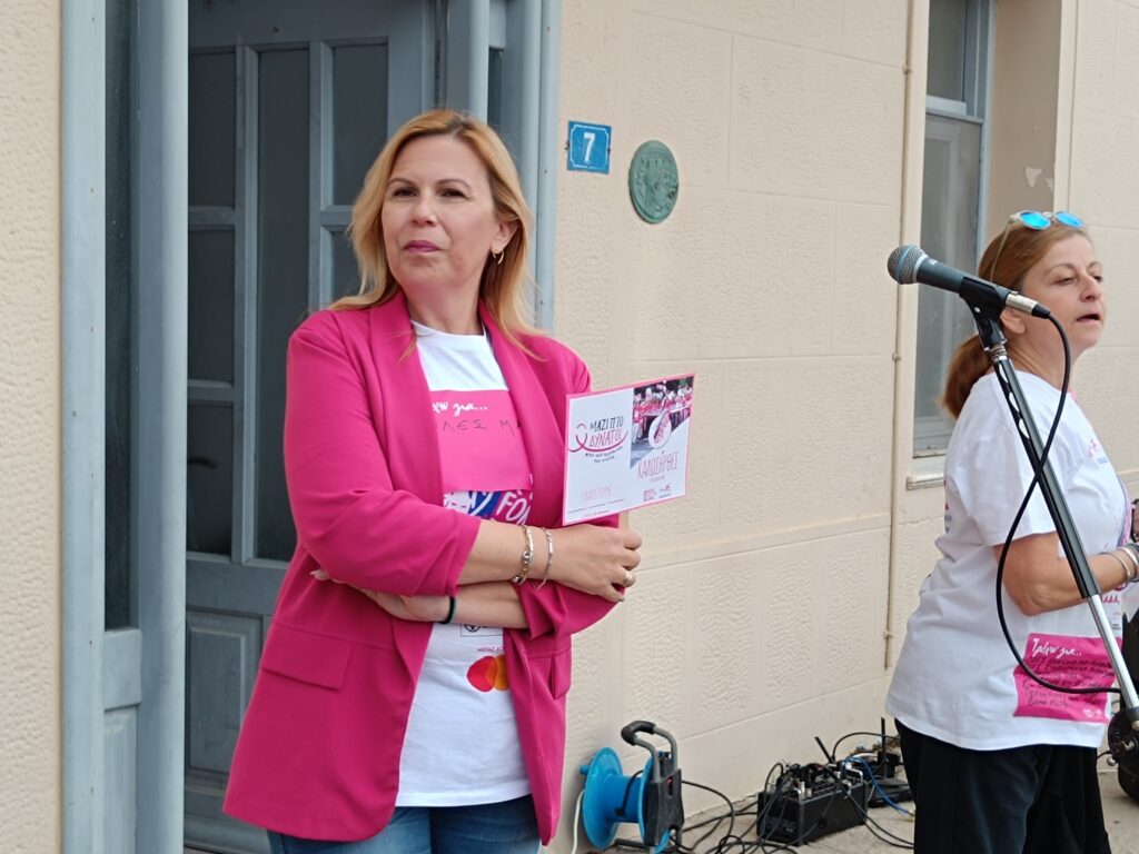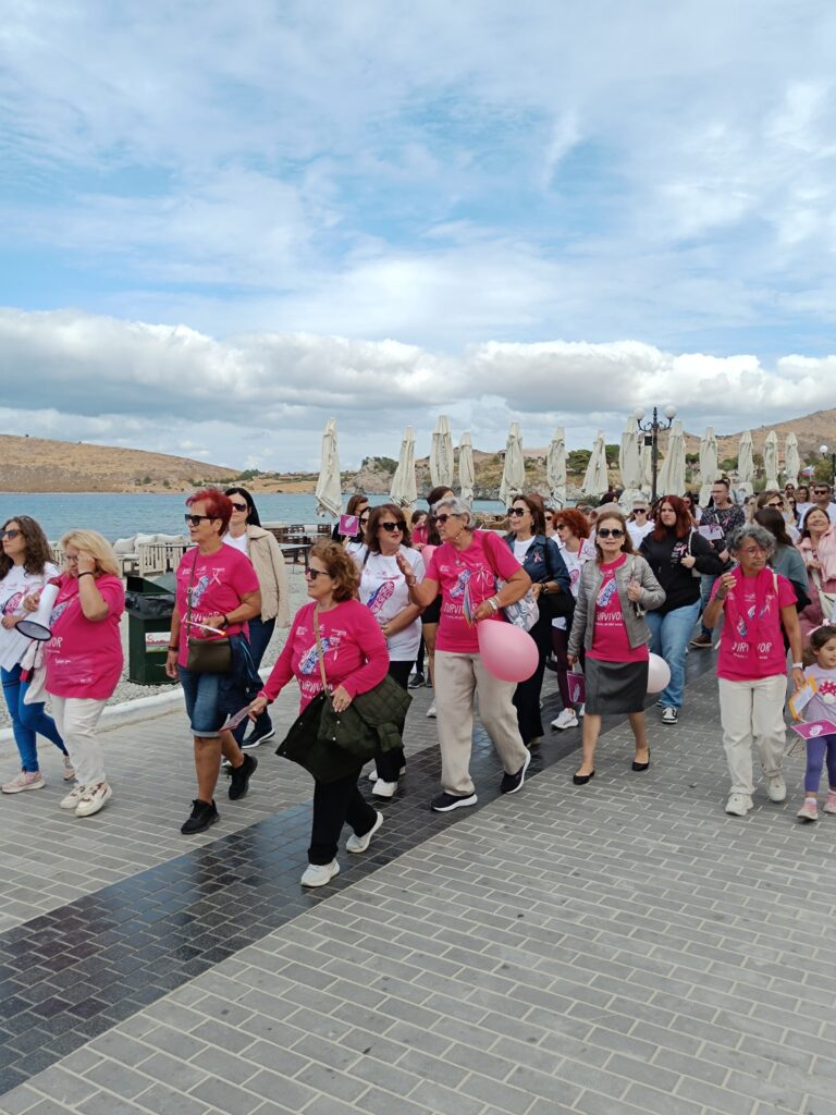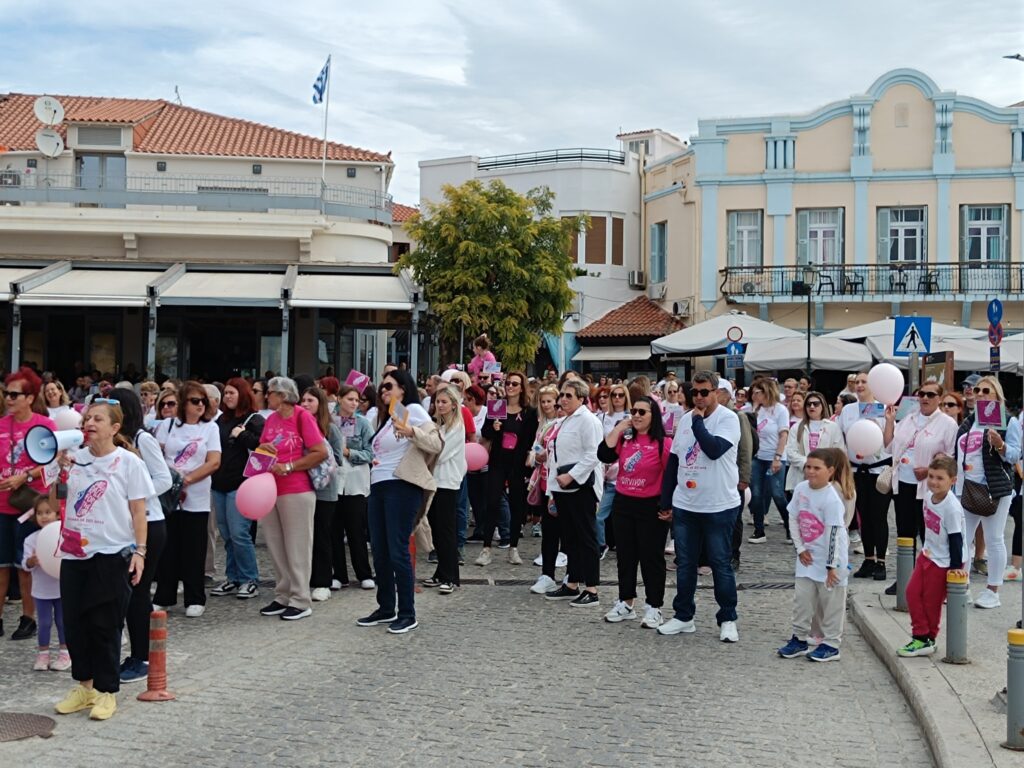 Η εκκίνηση έγινε από την Πλατεία ΚΤΕΛ μπροστά από το καφέ Καθ οδών, με αφετηρία τα ροζ και φούξια μπαλόνια! Ένα ανθρώπινο ποτάμι διέσχισε την πλατεία, συνέχισε προς την γέφυρα του Ρωμέικου, και τον πεζόδρομο, συνέχισε στην αγορά, στο λιμάνι και σταμάτησε στο Δημαρχείο. Εκεί περίμενε η δήμαρχος κ Ελεονώρα Γεωργα, και μίλησε για την σημασία της πρόληψης. Η Ελένη Ρούφου κάλεσε στο βήμα οποία και όποιον ήθελε να μιλήσει.