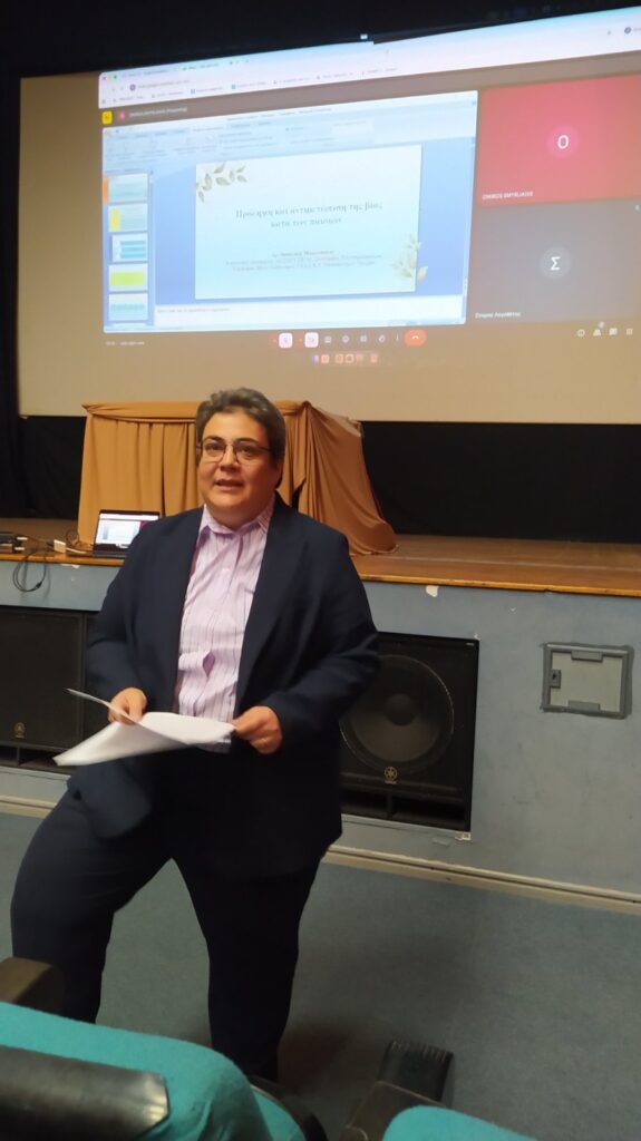 Στην ομιλία της, η Αντιδήμαρχος τόνισε τη σημασία της πρόληψης και της έγκαιρης παρέμβασης απέναντι στη βία κατά των παιδιών, μετέφερε τις ευχές της Δημάρχου για την επιτυχία της διοργάνωσης και εξέφρασε θερμές ευχαριστίες στους διοργανωτές και τους συνεργάτες για την άριστη προετοιμασία. Ιδιαίτερη μνεία έκανε δε στο Ίδρυμα Μποδοσάκη, σημειώνοντας ότι η σημερινή ημέρα είναι αφιερωμένη στη μνήμη των Εθνικών Ευεργετών.