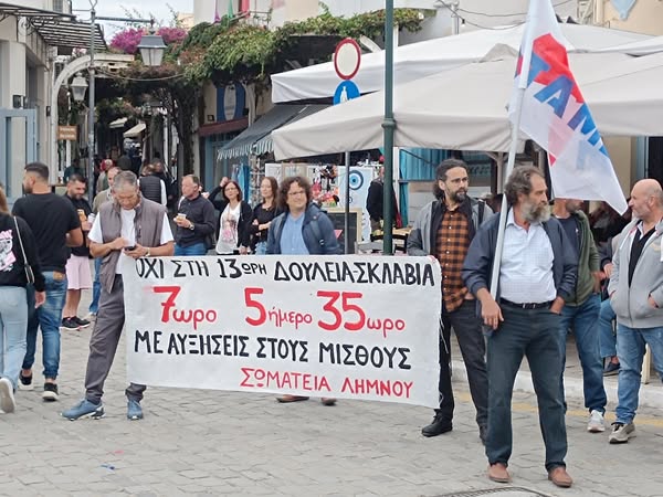 ΟΧΙ ΣΤΗΝ 13ΩΡΗ ΔΟΥΛΕΙΑ ΣΚΛΑΒΙΑ ΑΠΑΙΤΗΣΑΝ ΤΑ ΣΩΜΑΤΕΙΑ ΤΗΣ ΛΗΜΝΟΥ