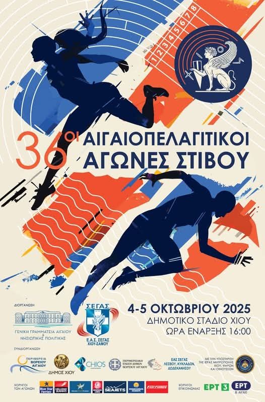 Η Χίος έχει την τιμή να φιλοξενήσει στις 4 και 5 Οκτωβρίου 2025, στο Δημοτικό Στάδιο της Χίου, τους 36ους Αιγαιοπελαγίτικους Αγώνες Στίβου, μία κορυφαία διοργάνωση που ενώνει αθλητές, προπονητές και φίλους του στίβου από όλο το Αιγαίο.