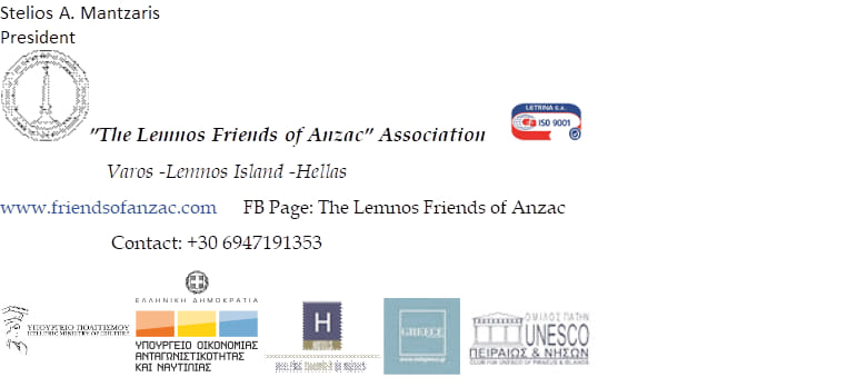 Let us support the Association “The Lemnos Friends of Anzac”, let us support the island’s role in world history, and let us move forward with unity, dignity, and respect for all who came before us.