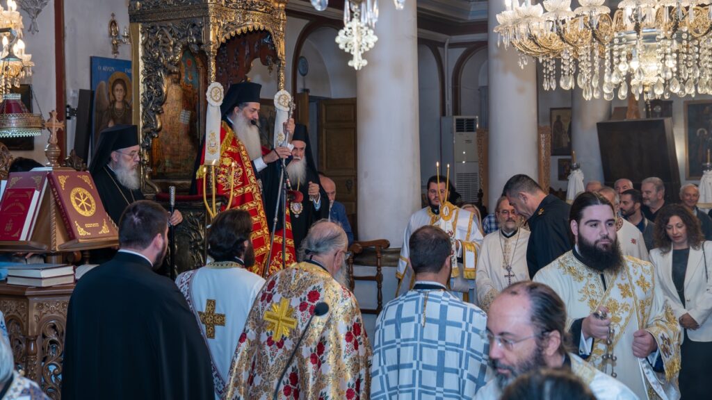 Αναλυτικότερα, την παραμονή της εορτής, Παρασκευή, 3 Οκτωβρίου 2025, τελέσθηκε ο Μέγας Πολυαρχιερατικός Εσπερινός, στον περικαλλή Ιερό Μητροπολιτικό Ναό της Παναγίας Τριάδος Μυρίνης, προεξάρχοντος του Σεβ. Μητροπολίτου Φθιώτιδος κ. Συμεών, ενώ συγχοροστάτησαν ο Σεβ. Μητροπολίτης Κηφισίας, Αμαρουσίου, Ωρωπού και Μαραθώνος κ. Κύριλλος και ο εορτάζων Σεβ. κ. Ιερόθεος.