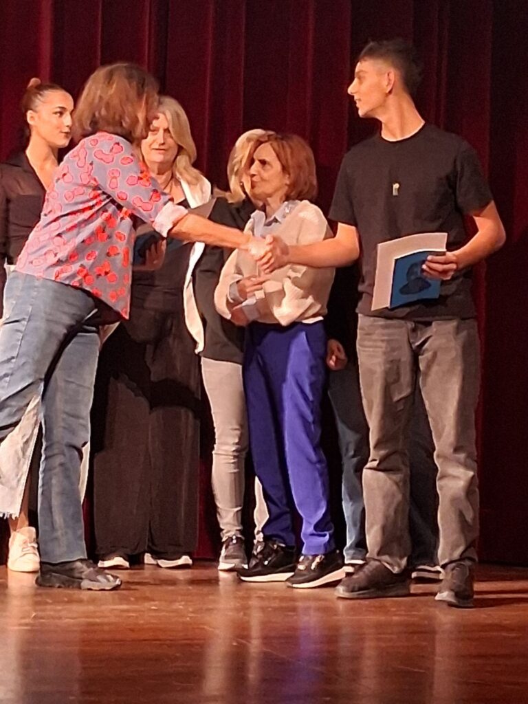 Οφείλουμε να συγχαρούμε για το βραβείο της μουσικής επένδυσης την απόφοιτή μας Ταρσή Ειρήνη που επένδυσε μουσικά με πιάνο την ταινία μας με μέρη από την Ιωνική Σουήτα του Χατζηδάκι και να εκφράσουμε τις ολόθερμες ευχαριστίες μας στο Μουσικό Εργαστήρι Λήμνου και την καθηγήτρια του Νίκη Μπουζιοτοπουλου για τη διδασκαλία των κομματιών και για την τελική ηχογράφηση.
