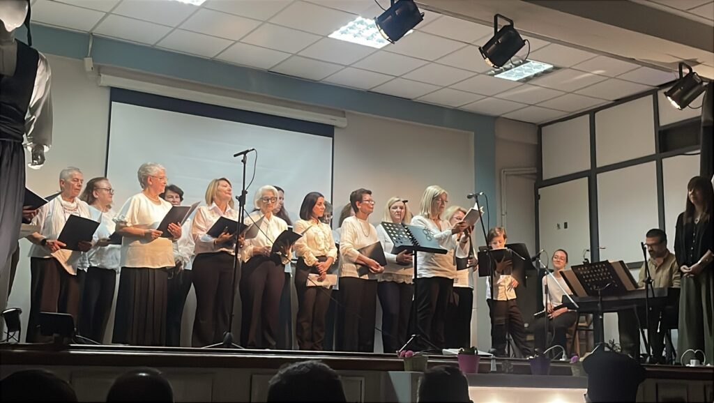 Στο δεύτερο μέρος της εκδήλωσης, η χορωδία του Μουσικού Εργαστηρίου Λήμνου τραγούδησε επετειακά τραγούδια σε διεύθυνση της κ. Νίκης Μπουζιωτοπούλου.