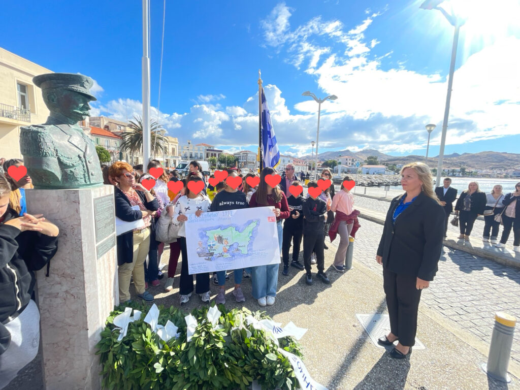 Το πρωί της ίδιας ημέρας ακολούθησε εκδήλωση στην προτομή του Παύλου Κουντουριώτη μπροστά στο Δημαρχείο, με συμμετοχή μαθητών των Δημοτικών Σχολείων της Μύρινας. Την εκδήλωση συντόνισε η Αντιδήμαρχος κ. Ιωάννα-Ελπίδα Διαματάρη. Οι μαθητές του 3ου Δημοτικού Σχολείου, με τον δικό τους ευφάνταστο τρόπο μίλησαν για την επέτειο της 8ης Οκτωβρίου και τον Παύλο Κουντουριώτη. Ακολούθησε κατάθεση στεφάνων από τον Βουλευτή του Ουγγρικού Κοινοβουλίου, τους Δημάρχους Λήμνου, Λύσης και Δρομολαξιάς-Μενεού, τη Δημοτική Σύμβουλο του αδελφοποιημένου Δήμου Tremezzina Ιταλίας κ. Rοsella Leoni και μαθητές των τριών σχολείων στην προτομή του απελευθερωτή της Λήμνου. Οι συμμετέχοντες ολοκλήρωσαν την τελετή ψάλλοντας τον εθνικό ύμνο.