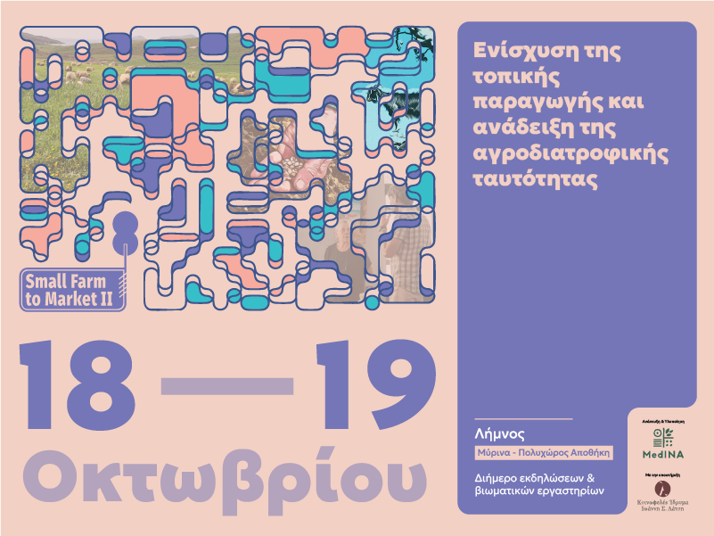 Το πρόγραμμα δράσεων θα πραγματοποιηθεί στον πολυχώρο Αποθήκη (Αιγαίου 13, Μύρινα – 814 00) και αποτελεί δράση του έργου «Small Farm to Market ΙΙ», το οποίο υλοποιείται από το MedINA με την υποστήριξη του Κοινωφελούς Ιδρύματος Ιωάννη Σ. Λάτση.