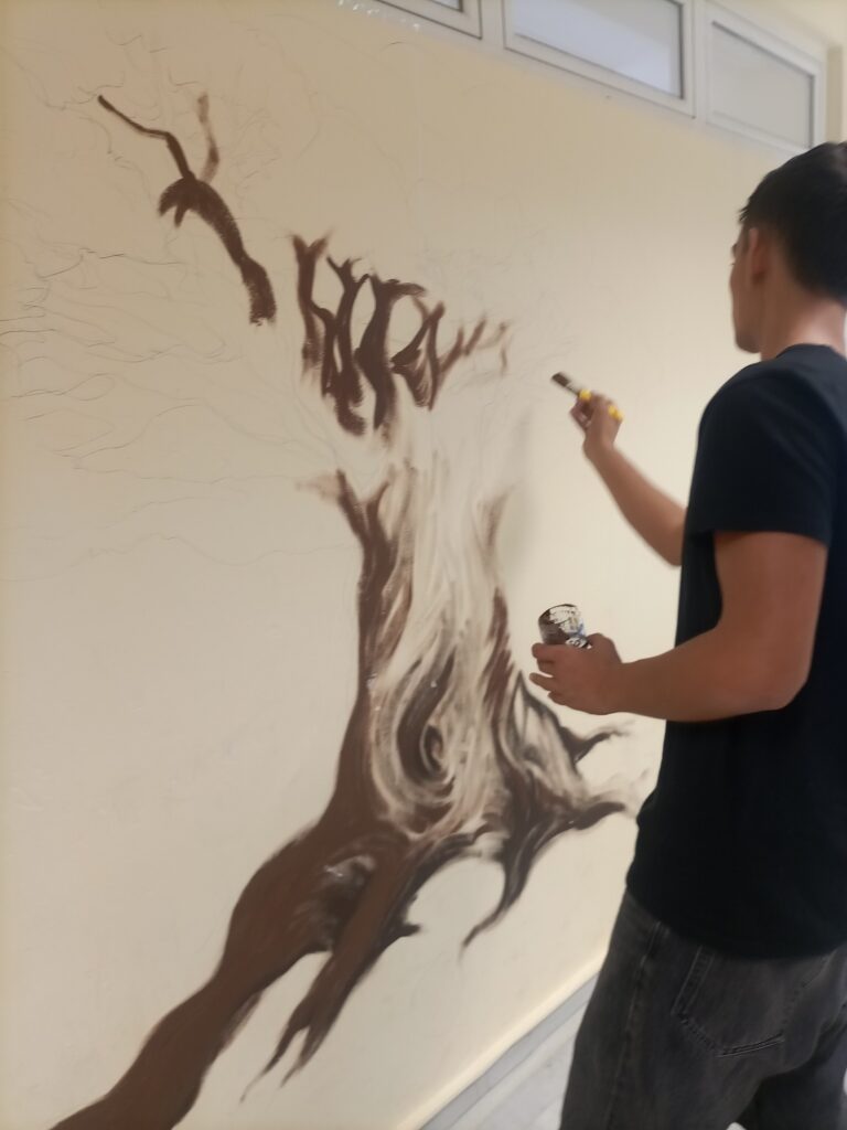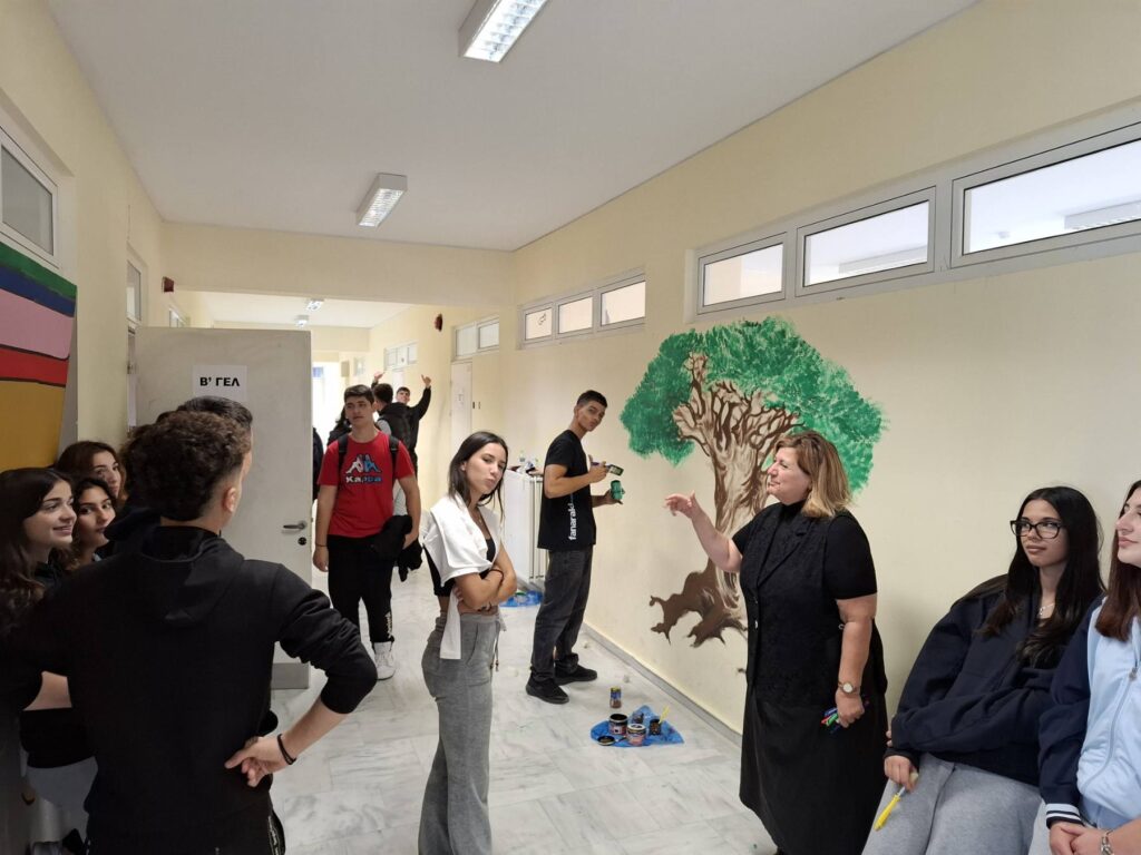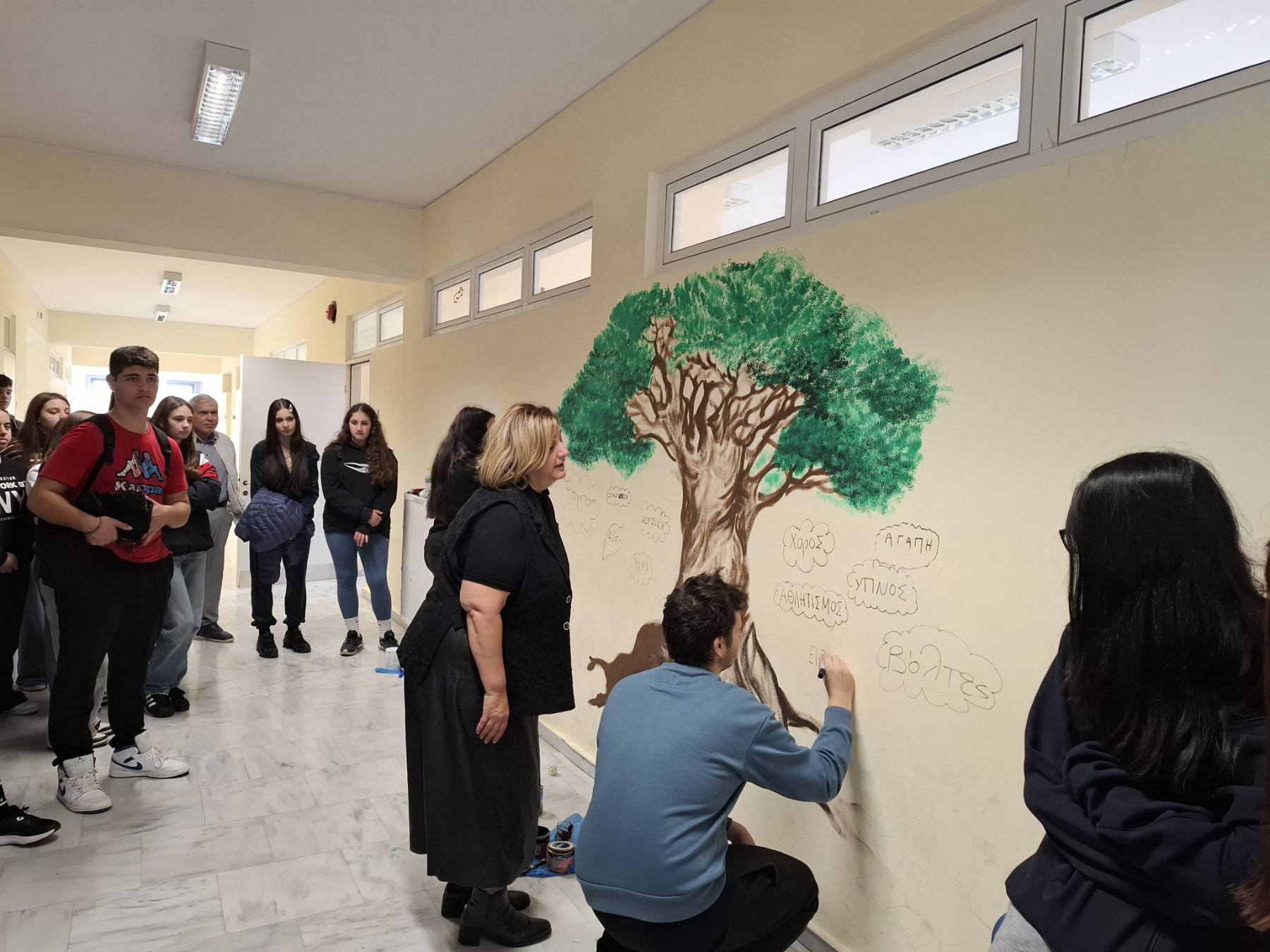 Αφού συζητήσαμε για όσα μας προκαλούν ψυχική ευεξία και την αφόρητη πίεση της καθημερινότητάς μας, ζωγραφίσαμε σε τοίχο του σχολείου μας το δέντρο της δικής μας ψυχικής υγείας με οδηγό τον ταλαντούχο μαθητή μας Βαγγέλη Καλαθά προσθέτοντας λέξεις που εκφράζουν για εμάς χαρά και ψυχική ισορροπία.
