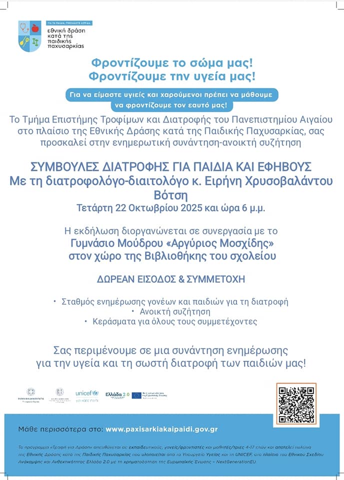 Εθνική δράση κατά της παιδικής παχυσαρκίας με ενημερωτική συνάντηση στο Γυμνάσιο Μούδρου