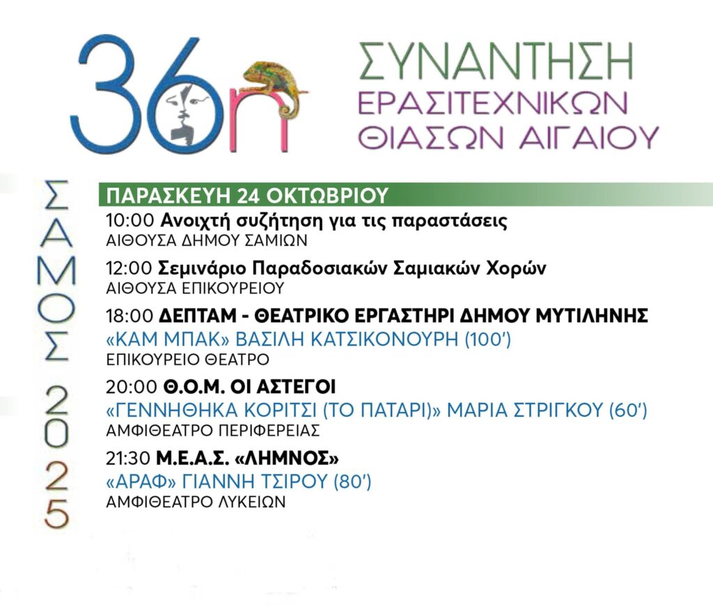 Αγαπάμε θέατρο, αγαπάμε ΟΜΟΣΠΟΝΔΙΑ ΕΡΑΣΙΤΕΧΝΙΚΟΥ ΘΕΑΤΡΟΥ ΑΙΓΑΙΟΥ και όσους το στηρίζουν.