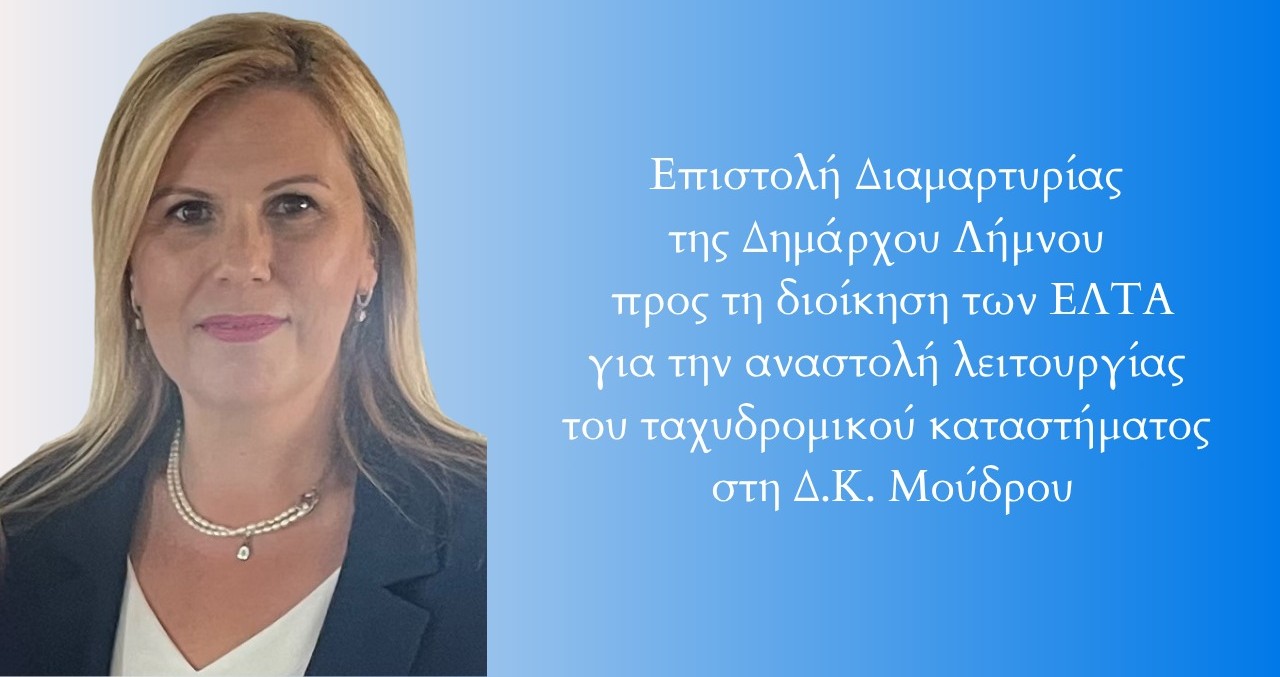 Με την παρούσα επιστολή, εκφράζουμε την έντονη διαμαρτυρία της τοπικής κοινωνίας της Λήμνου για την αιφνιδιαστική και αδικαιολόγητη απόφαση αναστολής/διακοπής λειτουργίας του Ταχυδρομείου μας, στην Δημοτική Κοινότητα Μούδρου.