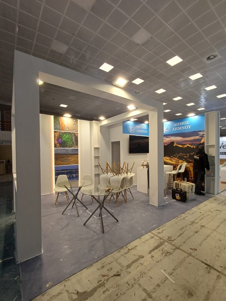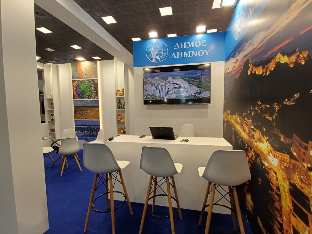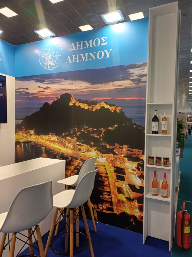 Το περίπτερο του Δήμου, προσεγμένο και κομψό, έχει σχεδιαστεί ώστε να προβάλλει τις φυσικές ομορφιές, τα τοπικά προϊόντα και τις ιδιαίτερες εμπειρίες που μπορεί να προσφέρει η Λήμνος σε κάθε εποχή του χρόνου, από τις χρυσαφένιες παραλίες και τα μοναδικά ηφαιστειογενή τοπία, έως τις γαστρονομικές παραδόσεις και τις δράσεις εναλλακτικού τουρισμού.