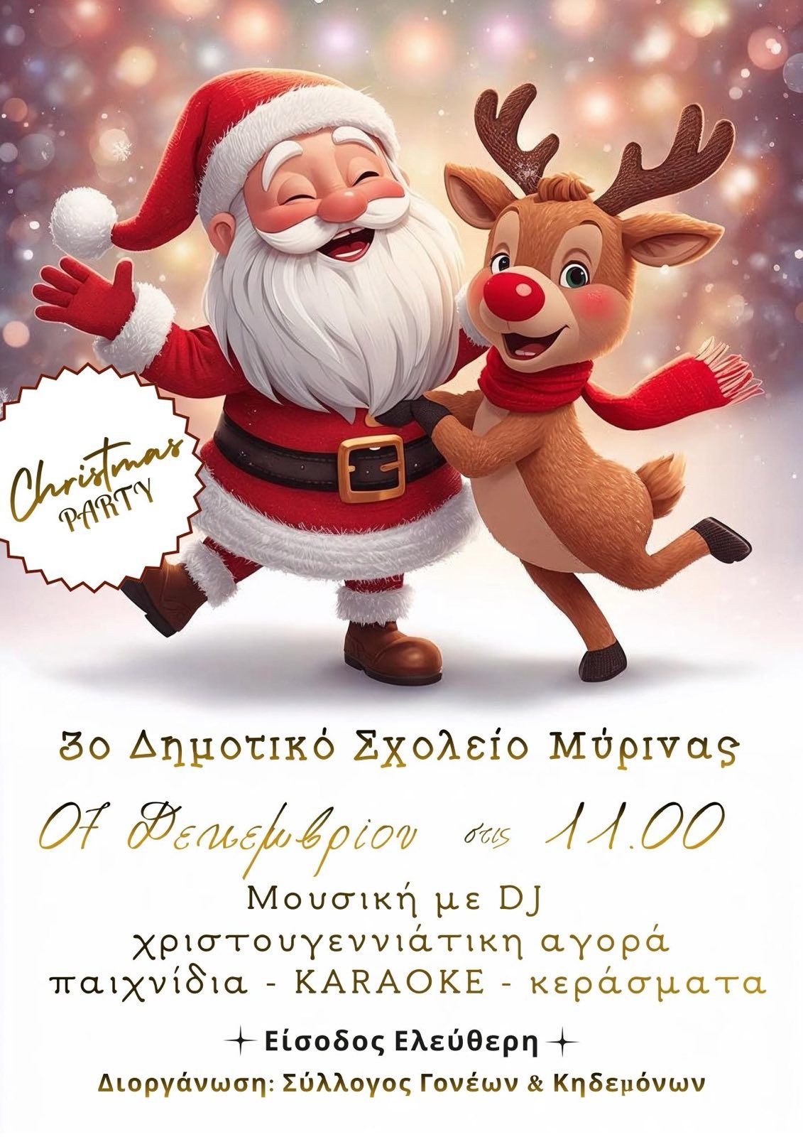 Ο Σύλλογος Γονέων και Κηδεμόνων του 3ου Δημοτικού Σχολείου Μύρινας σας προσκαλεί στη Χριστουγεννιάτικη γιορτή μας!