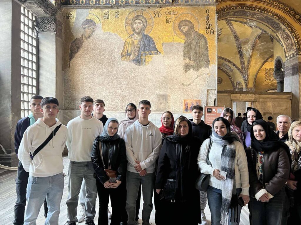 - Ιδιαίτερη στιγμή αποτέλεσε η είσοδος στην Αγία Σοφία, όπου οι μαθητές είχαν την ευκαιρία να γνωρίσουν από κοντά το σημαντικότερο μνημείο της βυζαντινής κληρονομιάς, μνημείο της Παγκόσμιας Κληρονομιάς της Unesco, να θαυμάσουν τα υπέροχα βυζαντινά ψηφιδωτά και να βιώσουν την ιστορία στην πράξη.
