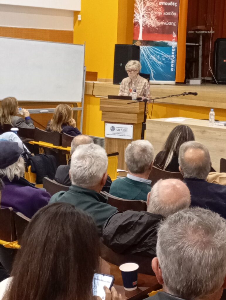 Η Ε. Μπαζίνη, Προϊσταμένη του Τμήματος Άυλης Πολιτιστικής Κληρονομιάς (ΑΠΚ) του Υπουργείου Πολιτισμού, παρουσίασε το έργο του Τμήματος και τις εγγραφές της Λήμνου στο Εθνικό Ευρετήριο ΑΠΚ (μάντρες, μελίπαστο τυρί, αμπελοοινική παράδοση), οι οποίες πραγματοποιήθηκαν με πρωτοβουλία, έρευνα και οικονομική υποστήριξη του MedINA σε συνεργασία με την Ανεμόεσσα. Τόνισε τη σημασία των ξερολιθικών κατασκευών ως εργαλείων αντιμετώπισης της κλιματικής κρίσης και την ανάγκη ενσωμάτωσης των παραδοσιακών μαντρών του νησιού στον χωρικό σχεδιασμό.