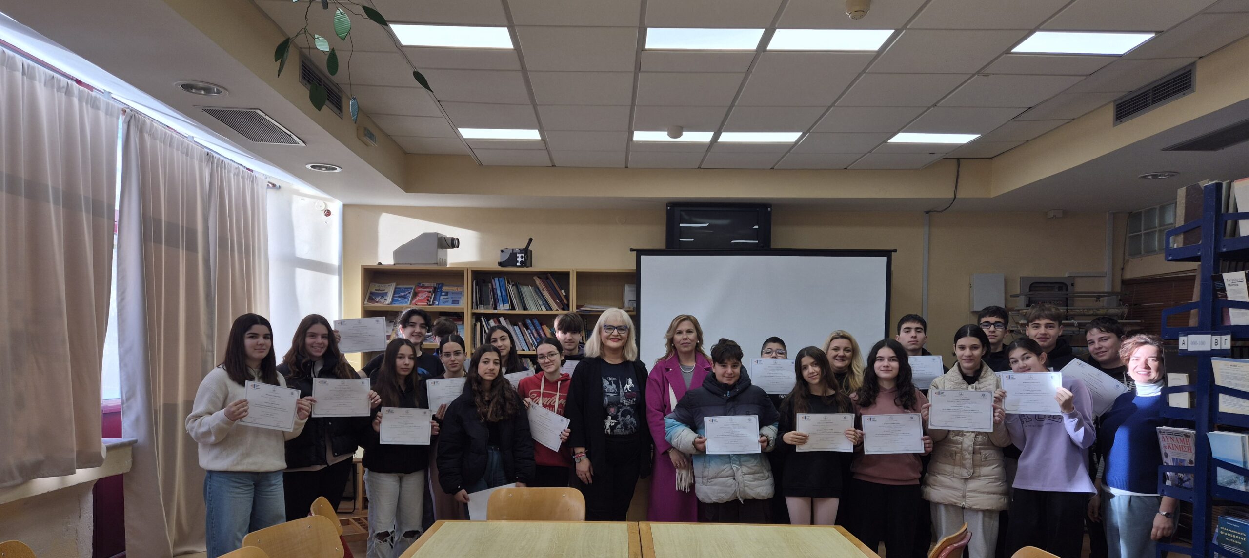 Η κ. Γεώργα απένειμε τα πιστοποιητικά στους μαθητές και στις μαθήτριες και συνομίλησε για αρκετό χρόνο μαζί τους.