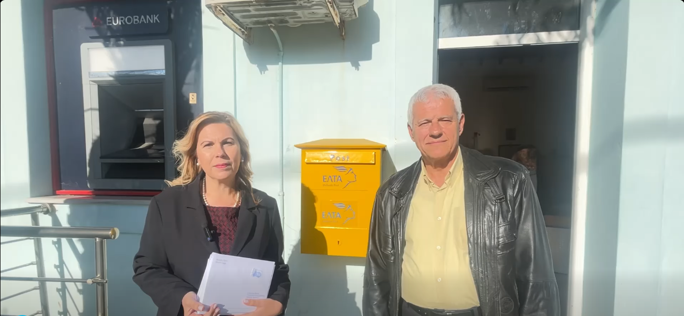 Η Δήμαρχος Λήμνου κ. Ελεονώρα Γεώργα επισκέφθηκε σήμερα, Παρασκευή 12 Δεκεμβρίου, το υποκατάστημα των Ελληνικών Ταχυδρομείων στο Μούδρο, όπου προέβη σε μία συμβολική αλλά και ουσιαστική κίνηση: απέστειλε χριστουγεννιάτικες κάρτες από το γραμματοκιβώτιο του συγκεκριμένου καταστήματος, τονίζοντας τη σημασία της διατήρησής του.