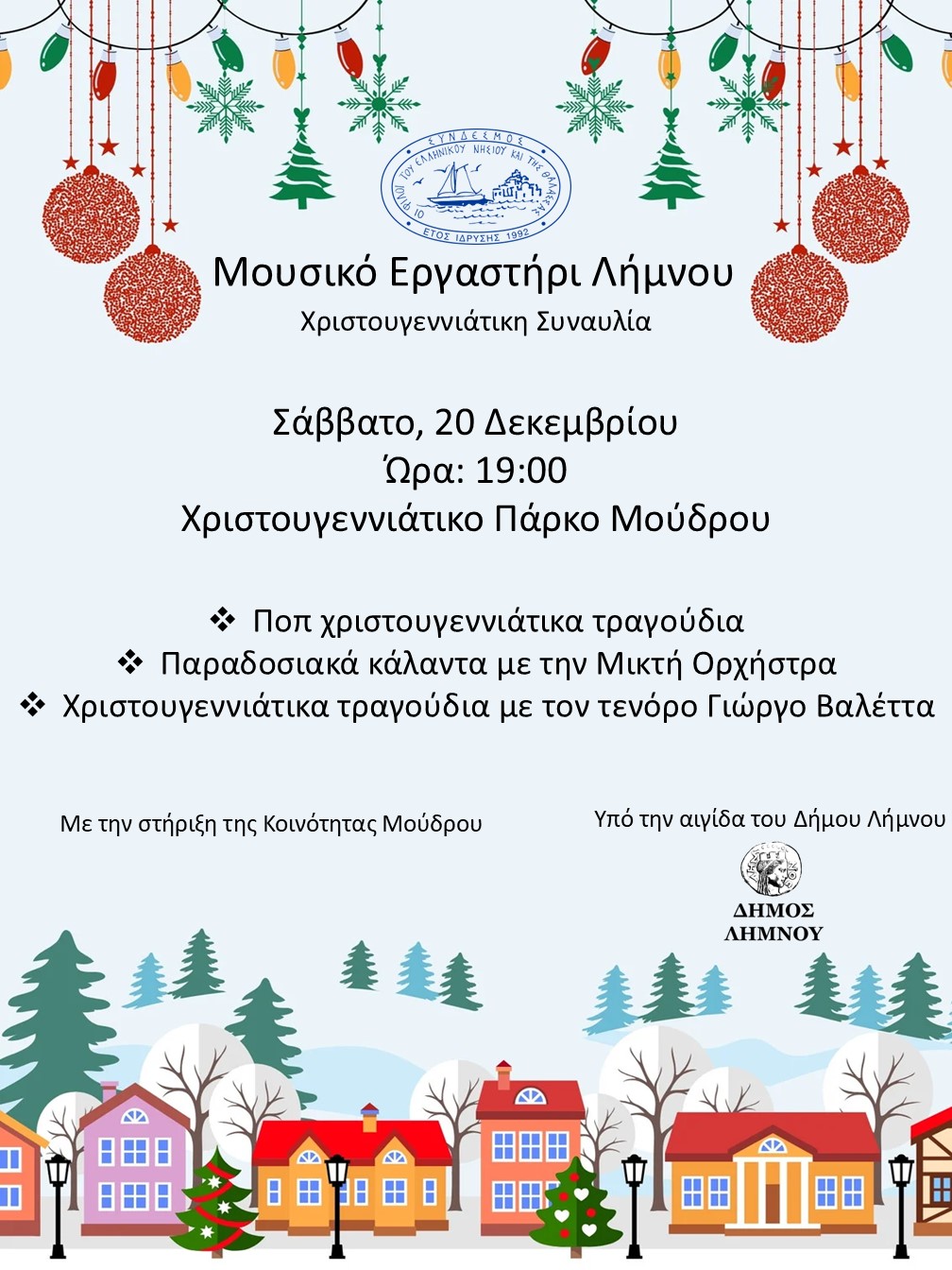 Η χριστουγεννιάτικη συναυλία διεξάγεται υπό την αιγίδα του Δήμου Λήμνου