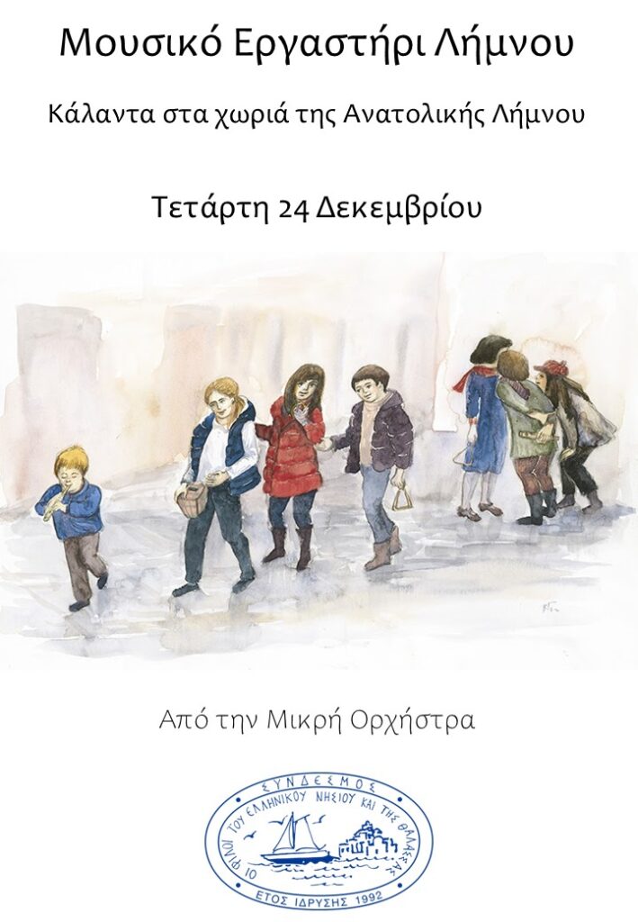Εκτός από τη σημερινή εκδήλωση που γίνεται σε συνεργασία με το σύλλογό μας Μ.Ε.Α.Σ. “ΛΗΜΝΟΣ”, με τίτλο “Προσωπογραφίες του Μάνου και του Μίκη”, το Μουσικό Εργαστήρι Λήμνου ετοιμάζει και άλλες εκδηλώσεις για την εορταστική περίοδο.